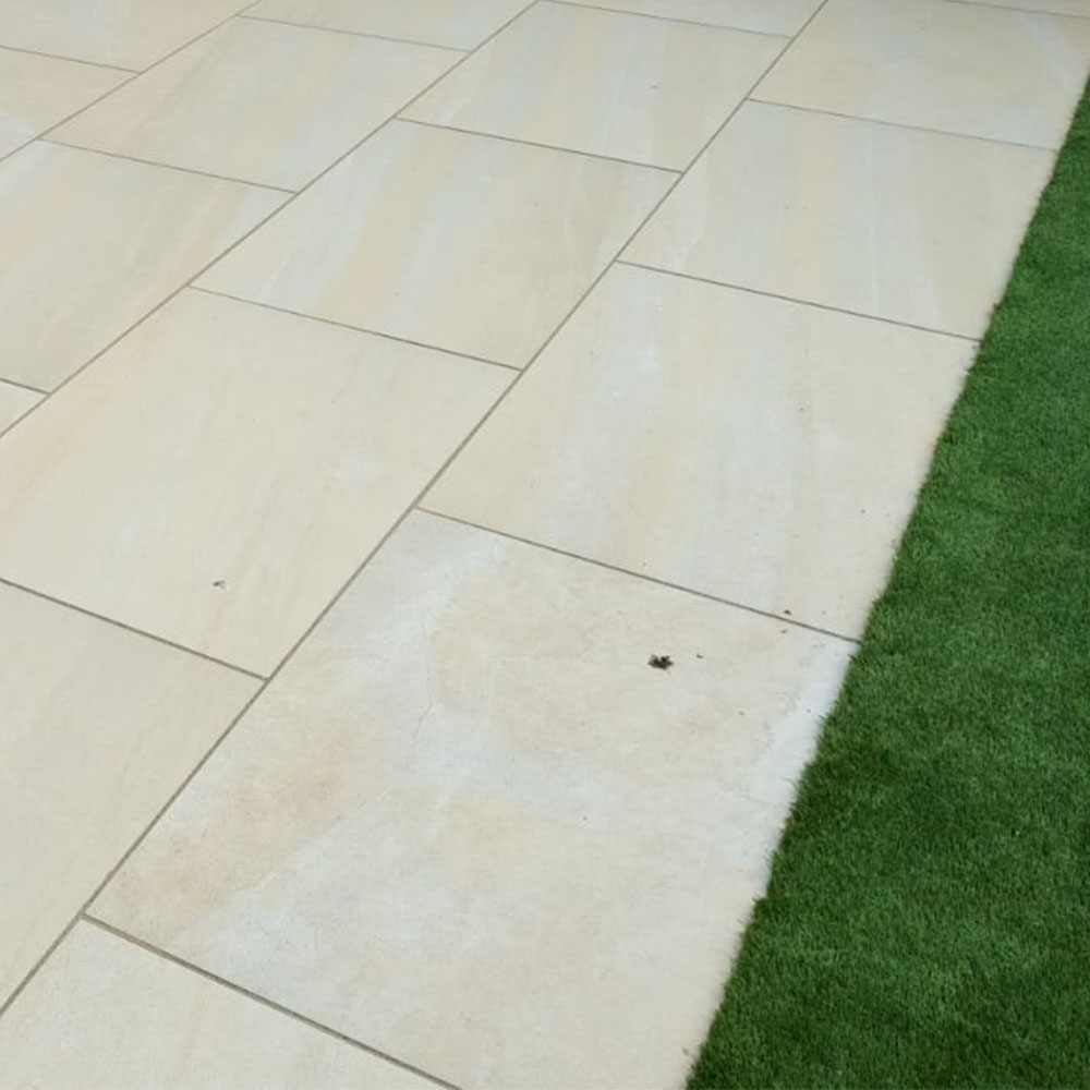 Canyon Ivory Porcelain is perfect for “inside to out” projects, Porcelain paving can be laid on flat roofs, balconies, patios, paths, steps, swimming pools and driveways.